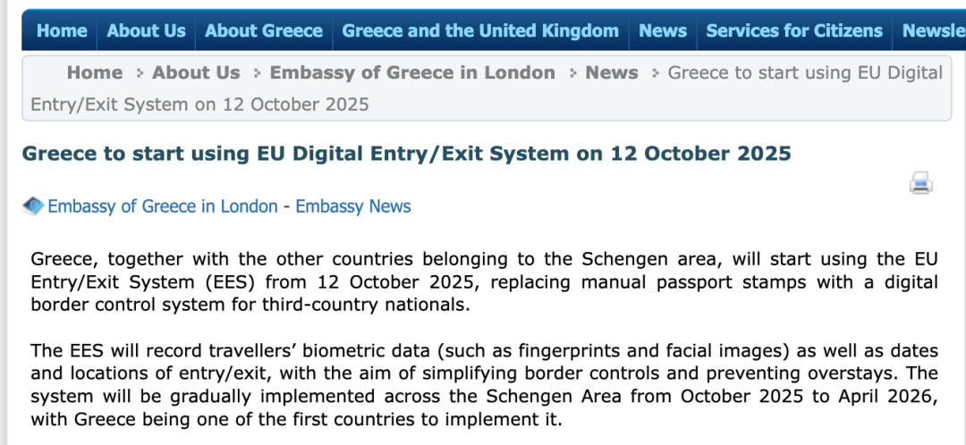 詳細介紹希臘將于2025年10月12日起正式啟用,全新邊境管理系統(tǒng):出入境信息系統(tǒng)(EES)。出入境數(shù)字管控系統(tǒng)將取代傳統(tǒng)的護照蓋章。將大幅簡化入境流程,讓您的歐洲之旅更便捷、更高效,輕松開啟旅程。